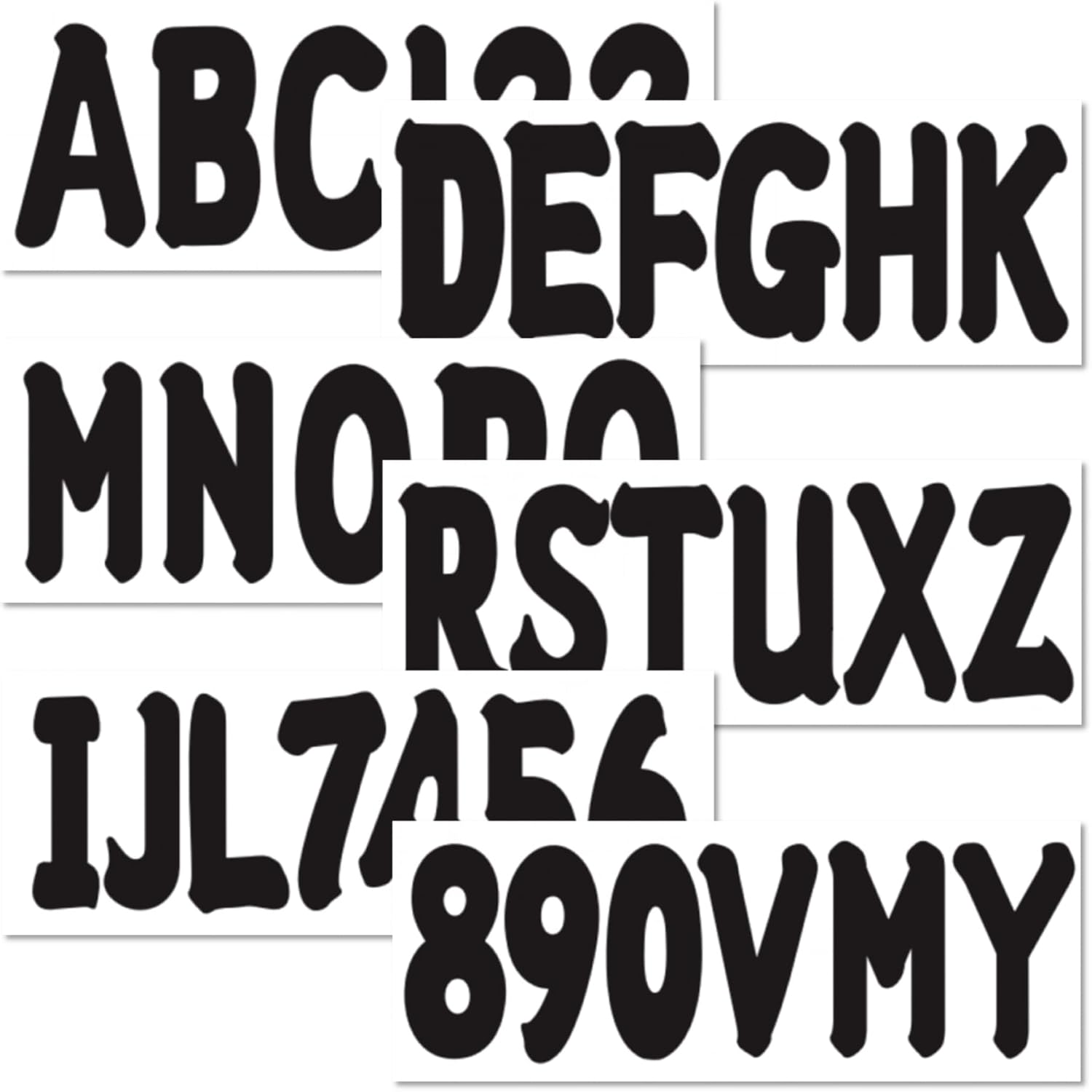 Contains 4 sets Numbers 0-9 and A-Z Decals (146 decals)